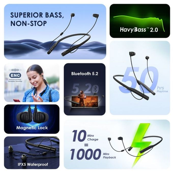 • Long Playtime: Up to 50 hours of playtime on a single charge.