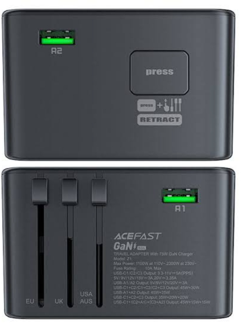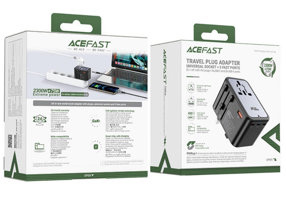 Are you looking for a universal solution to charge all your devices while traveling abroad? Meet Acefast Z1 – an adapter that combines cutting-edge technology, versatility and the highest safety standards. Thanks to the use of gallium nitride (GaN) technology, it is smaller, more efficient and cooler than traditional chargers. No matter where you are, its global compatibility allows you to charge anywhere in the world.