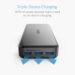 PowerIQ and VoltageBoost combine to deliver the fastest possible charge (does not support Qualcomm Quick Charge). Recharges itself in 10 hours with a 2 amp charger, phone chargers (generally 1 amp) may take up to 20 hours.