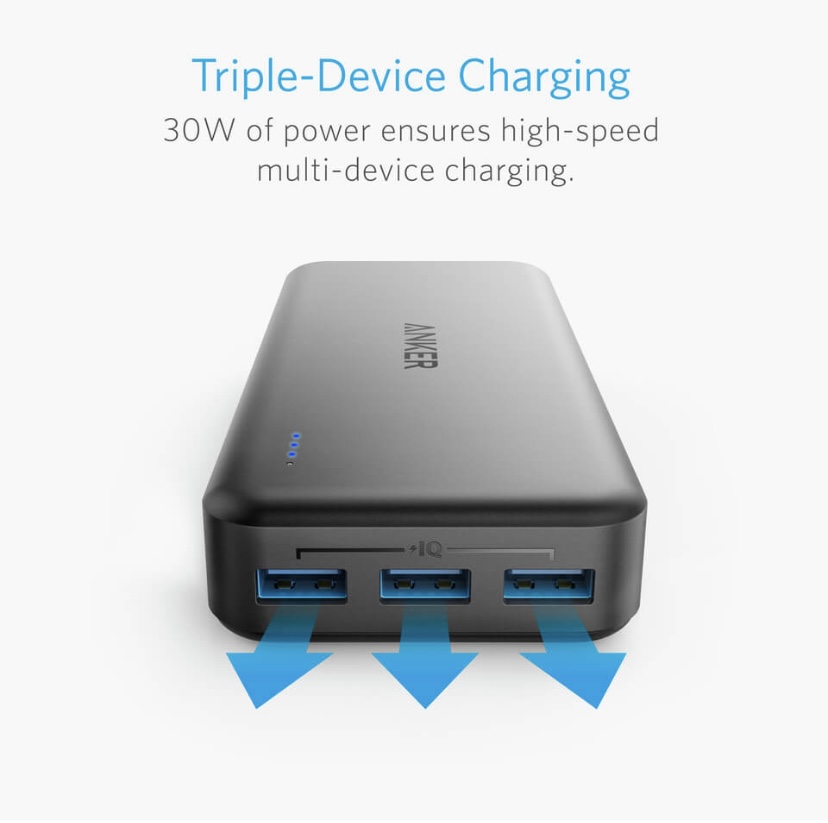 Anker PowerCore 20100 Portable Charger, Micro USB cable, welcome guide, our fan-favorite 18-month warranty and friendly customer service. USB-C cable and Lightning cable for iPhone / iPad sold separately.
