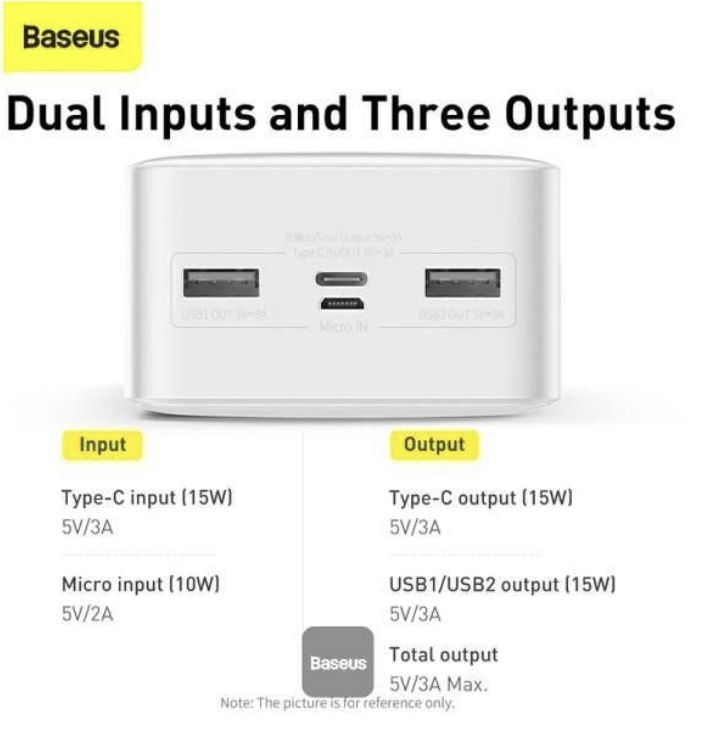 The Baseus power bank is portable and suitable for travel. It is compatible with most USB-powered devices