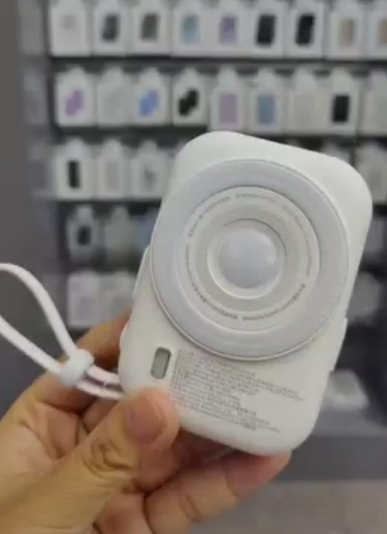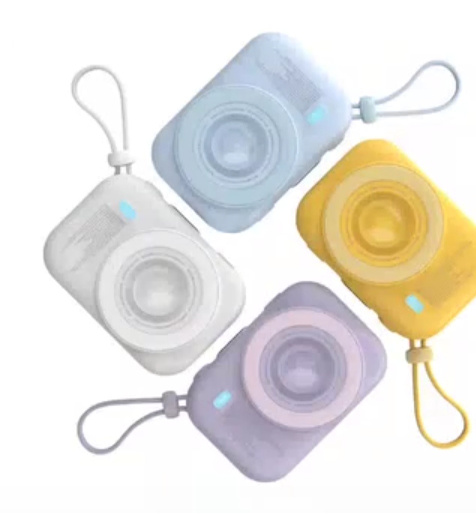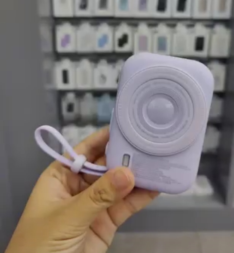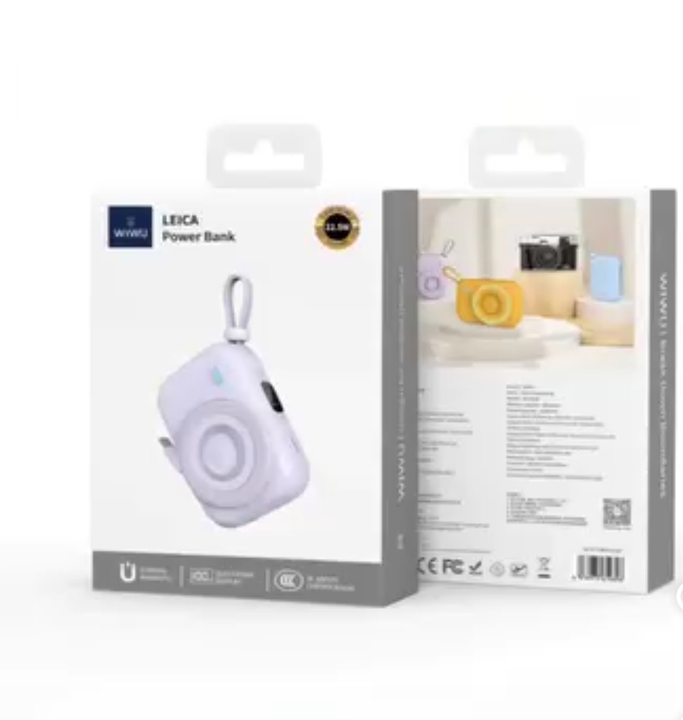 Leica-inspired power bank with built-in lightning and Type-C cables, charges two phones at once, and always wireless