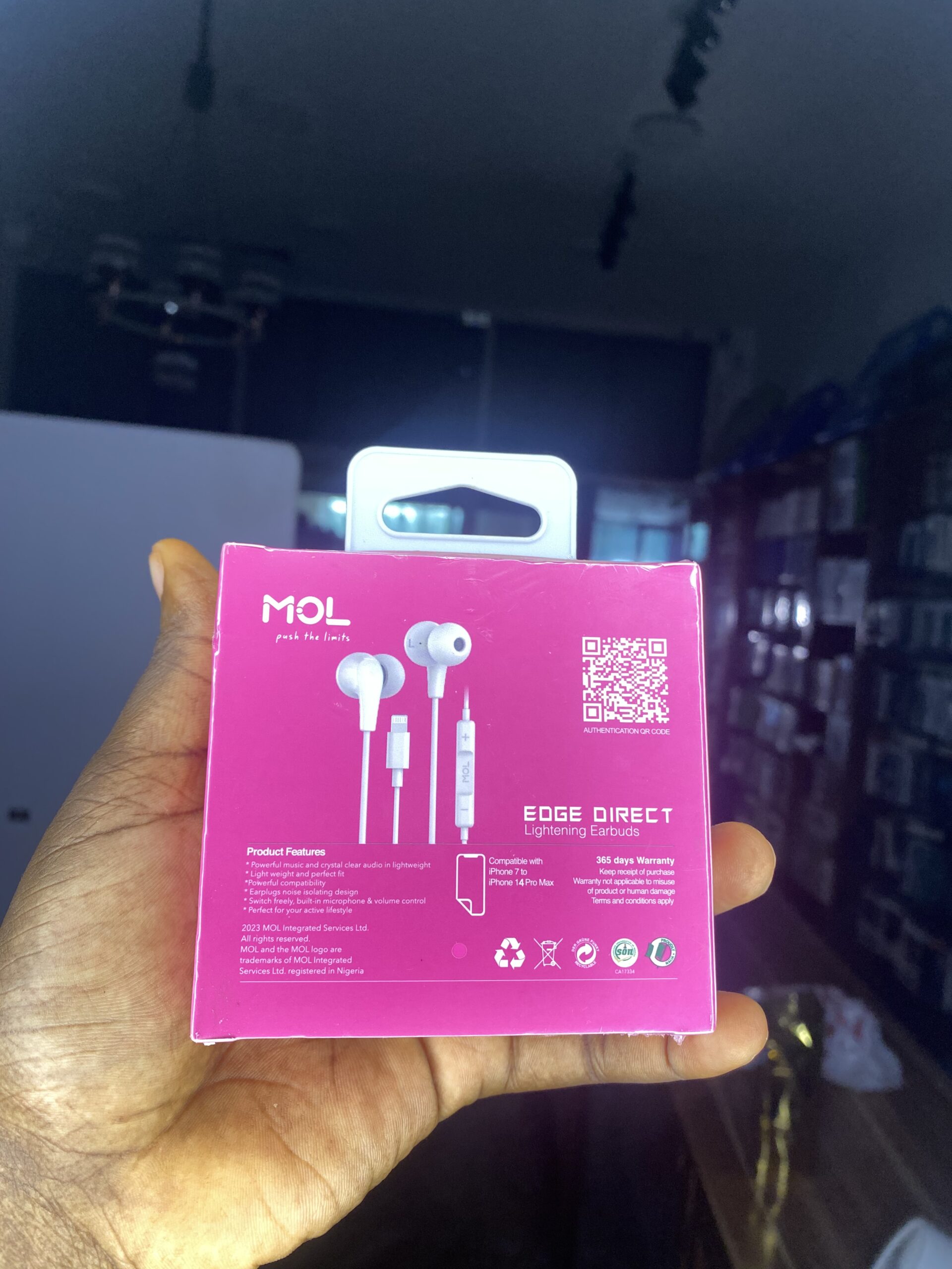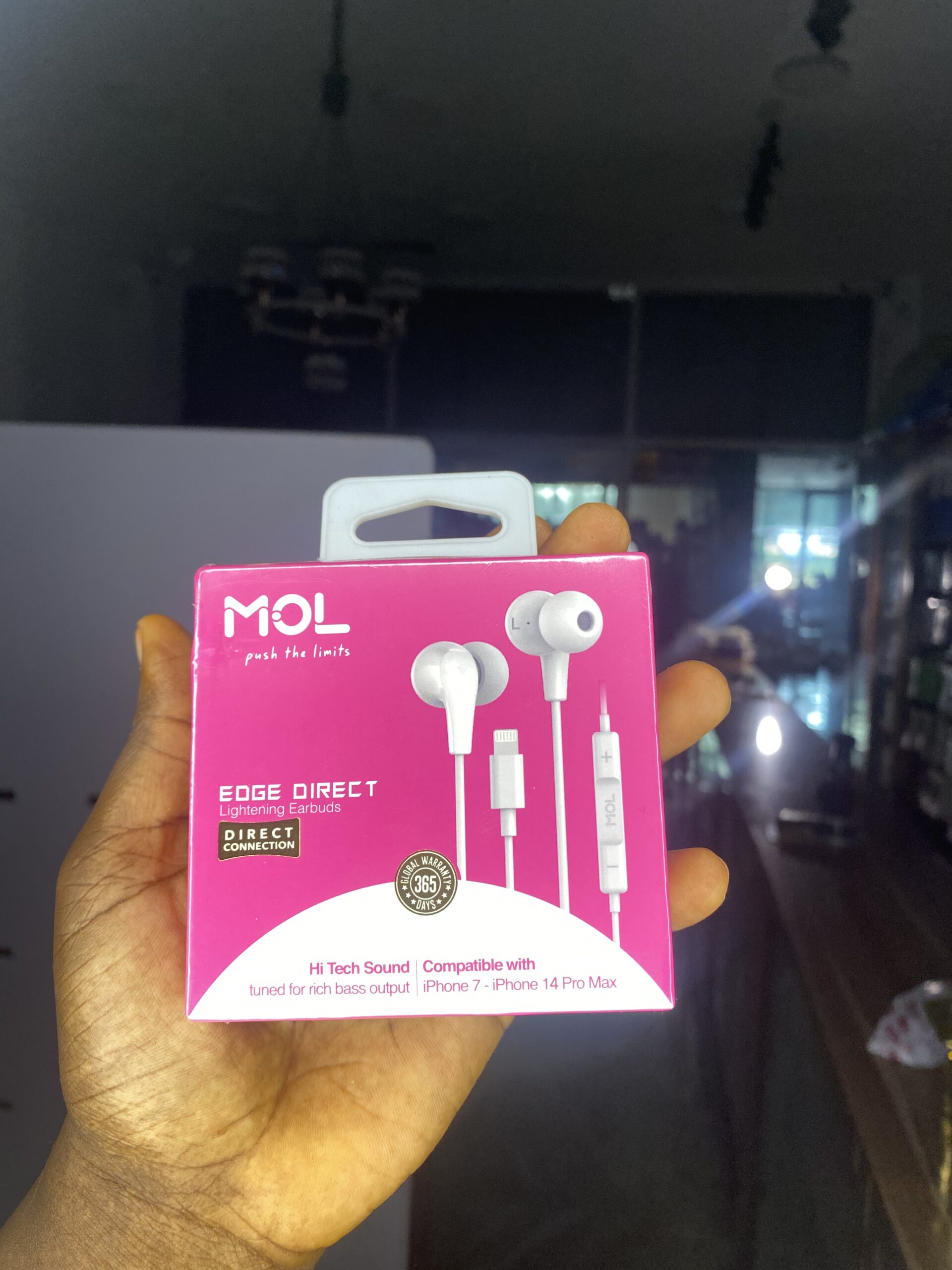 MOL Edge Direct Lightning Earbuds, designed for Apple iPhones.