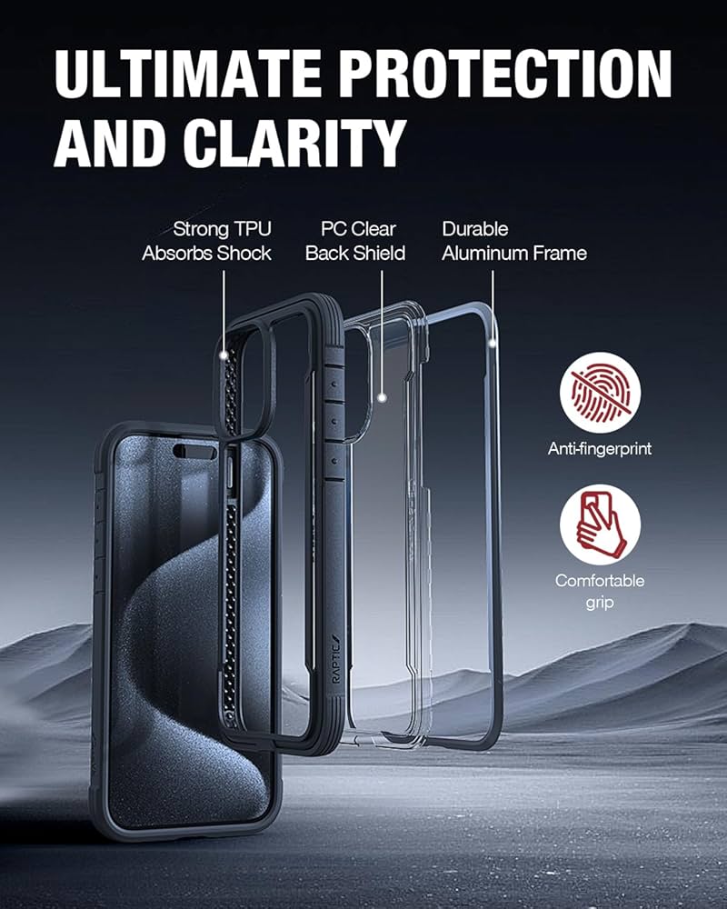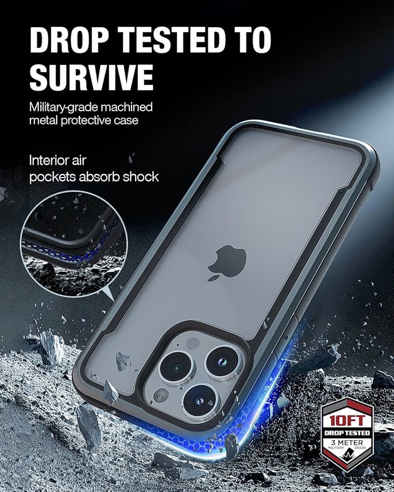 It’s a shockproof case that typically offers military-grade drop protection (up to 6ft/2 meters as indicated on the box). It features a combination of materials like machined aluminum, hard polycarbonate, and soft rubber for durability and impact absorption.