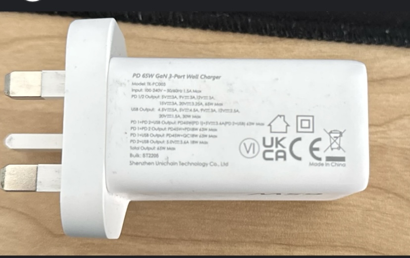 Original MacBook PRO 30W Power Adapter USB C UK 3pin Pd Adapter (UKUsed)