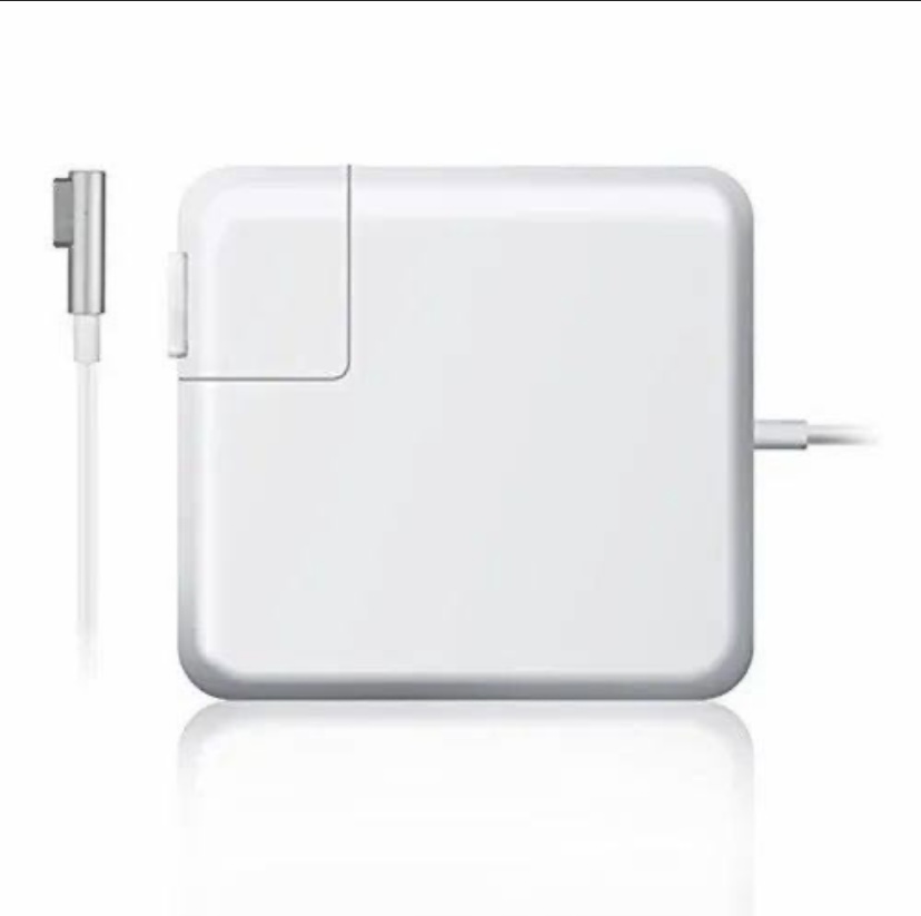 This adapter uses a magnetic DC connector that detaches if tripped over, preventing damage. It has an LED indicator light that shows charging status, amber when charging and green when fully charged.