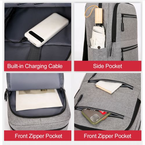May include reflective strips for safety, ergonomic design for comfort, adjustable shoulder straps, and an external USB port for charging devices.