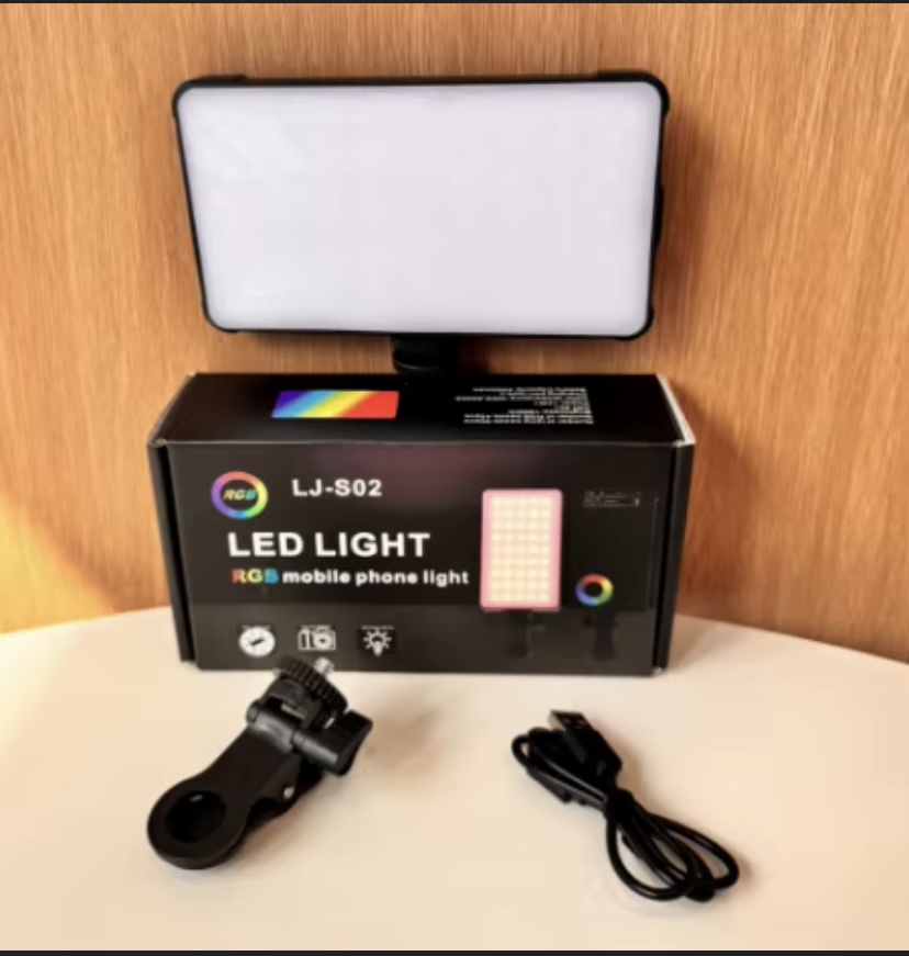 The LJ-S02 is a compact, rechargeable clip-on LED light designed for smartphones. It features 112 LED beads (warm + cool), adjustable brightness, and a 4000 mAh battery that lasts up to 30 hours. Ideal for selfies, livestreams, video calls, and vlogging, it charges via USB-C and offers bright, customizable lighting for content creators.
